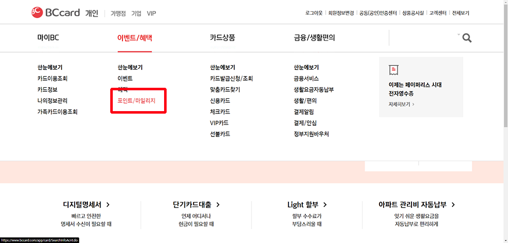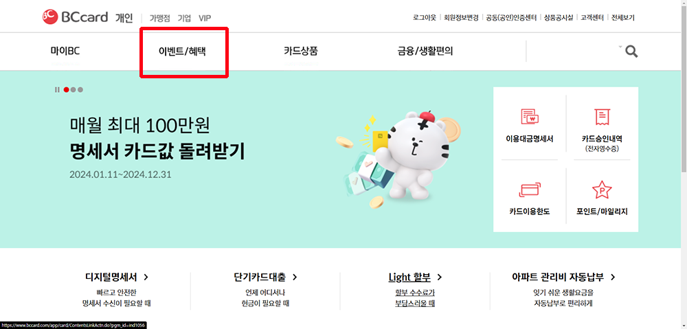 비씨카드 홈페이지 : https://www.bccard.com/app/card/MainActn.do