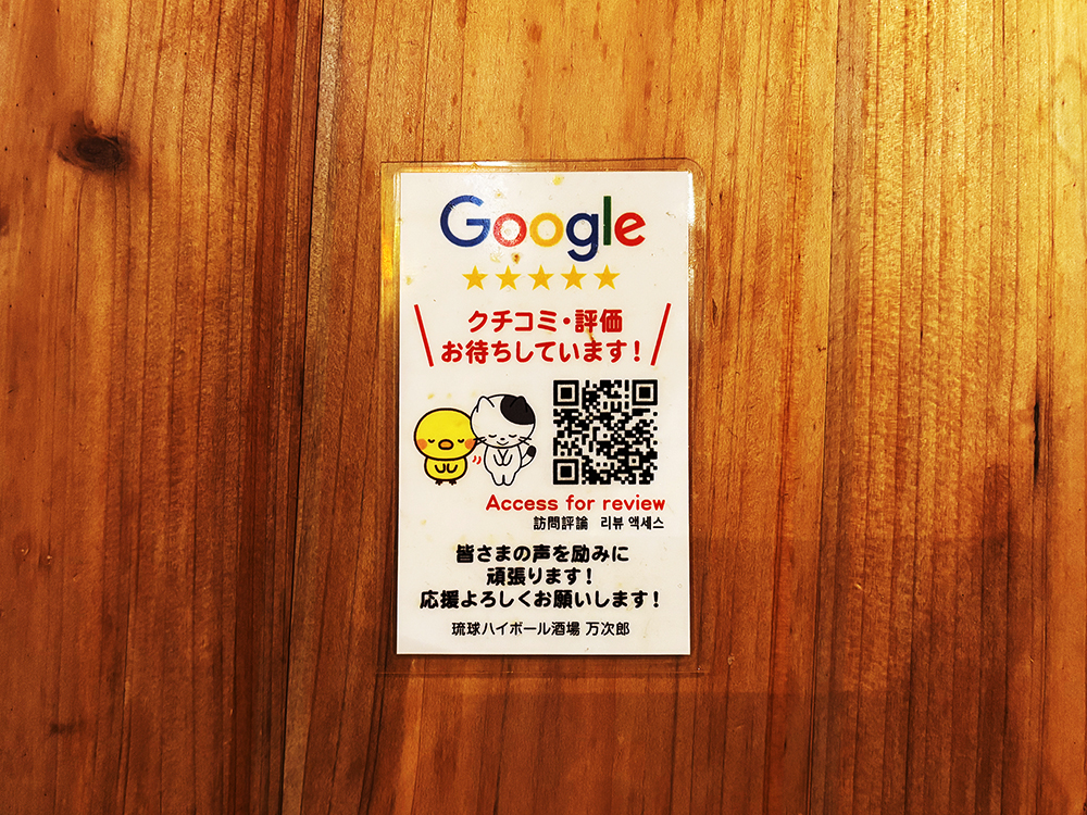 만지로의 맛과 분위기, 가격, 친절함 등을 평가하고 싶다면 곳곳에 붙어 있는 구글 리뷰 QR 코드를 찍어서 평점을 남기면 됩니다.
