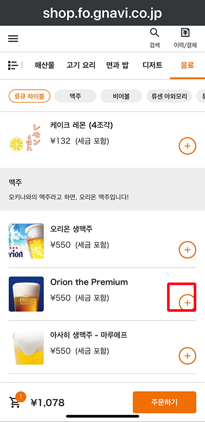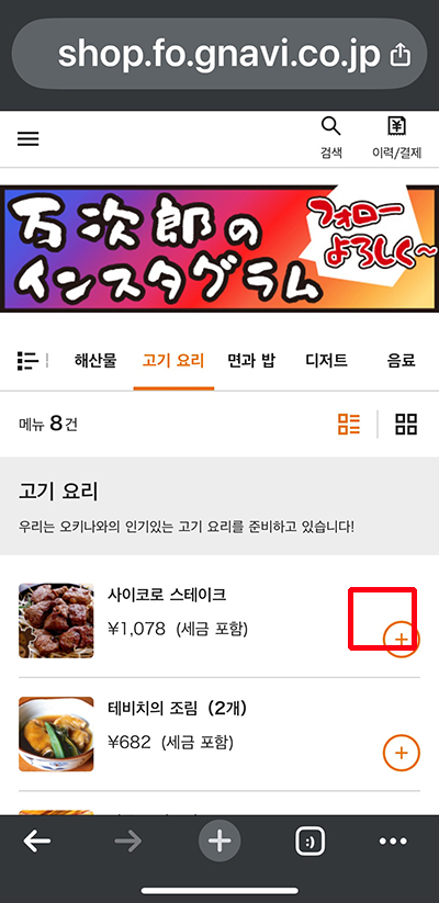 메뉴가 나오면 가격을 확인하고 세금 포함인지 별도인지도 확인하고 원하는 메뉴를 찾습니다.