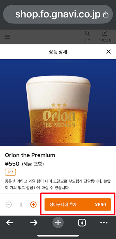 생맥주를 장바구니에 추가 해 줍니다.
