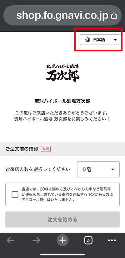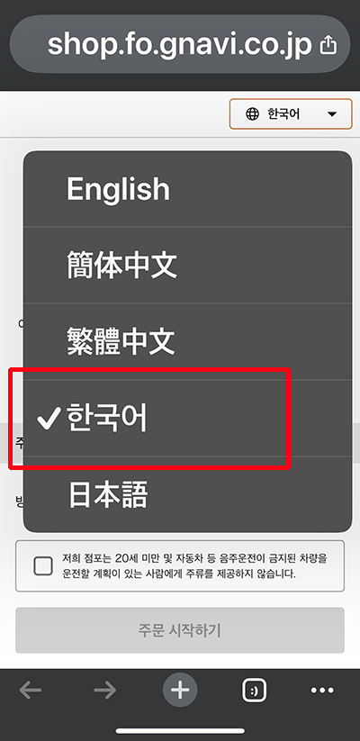 만지로 주문 페이지가 열리는데 일본어를 모른다면 상단의 언어 변환 창에서 영어 또는 한국어로 변경합니다.