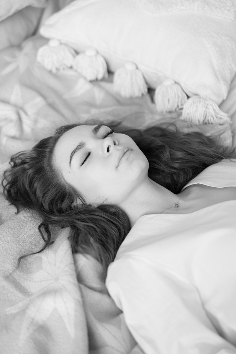 하얀 침구 위에 누워 있는 꿈