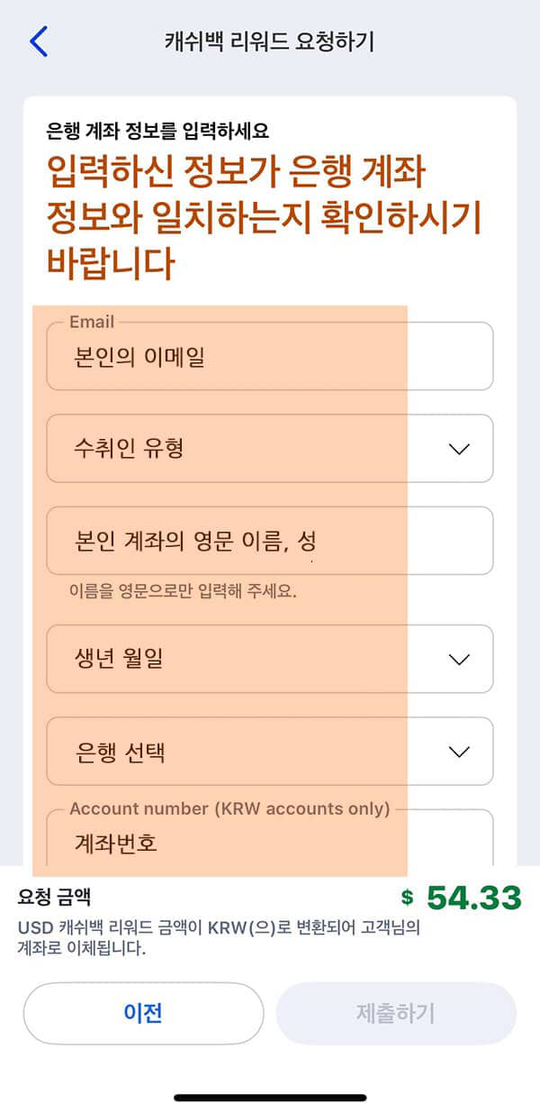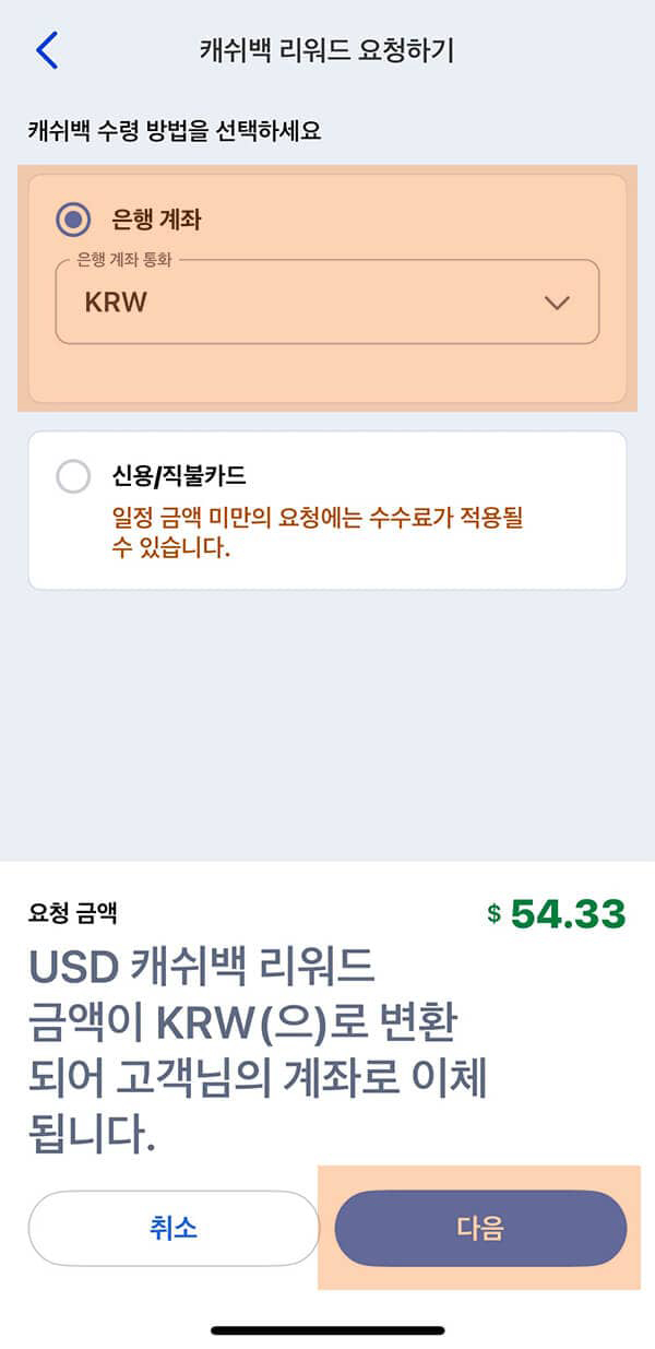 캐쉬백 리워드를 요청할 수 있음을 의미합니다.