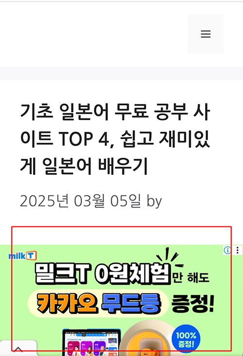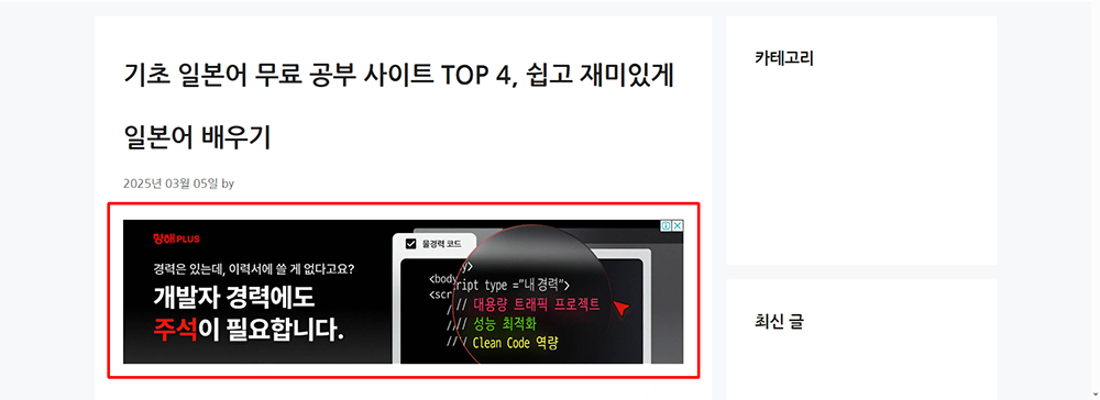 아래는 모바일에서 애드센스 광고가 배치 된 경우 입니다.