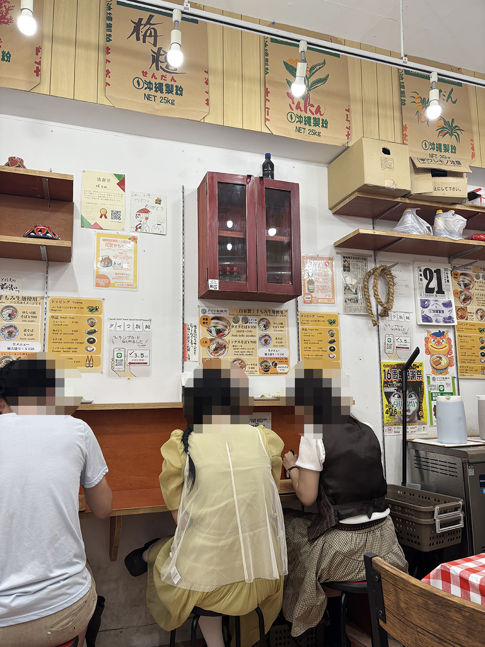 타이라 제면소의 가게 내부입니다. 한국인 관광객들이 오키나와 소바를 맛있게 먹고 있습니다.