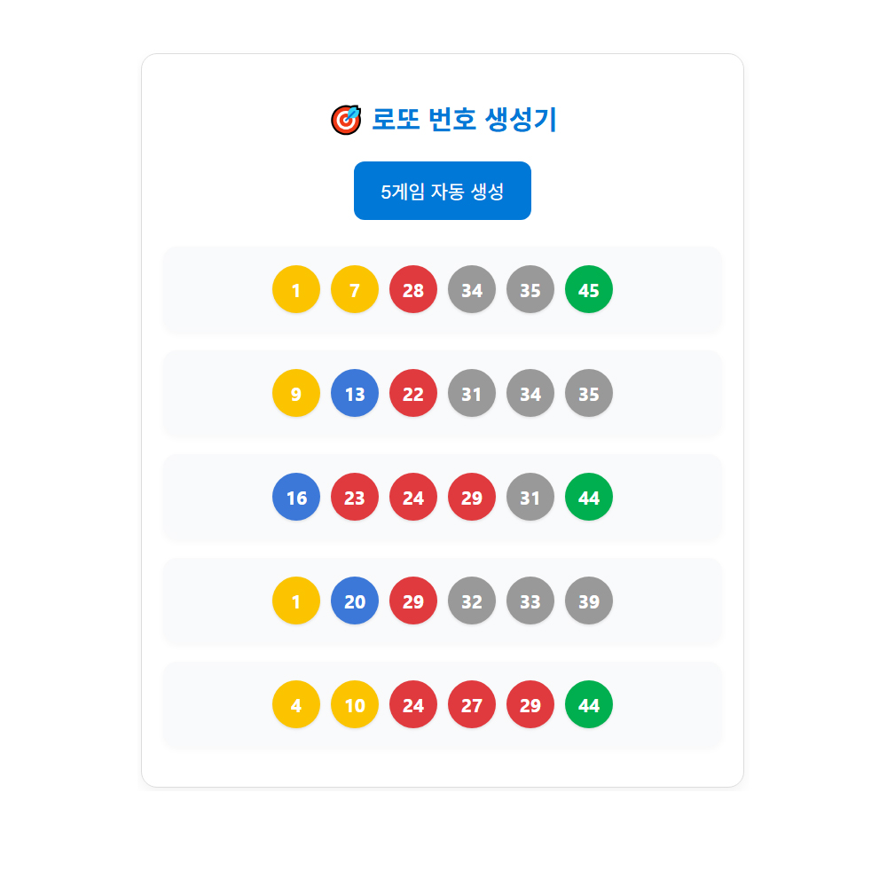 이럴 때 간편하게 사용할 수 있는 로또 번호 자동 생성기를 만들어 보았습니다.
