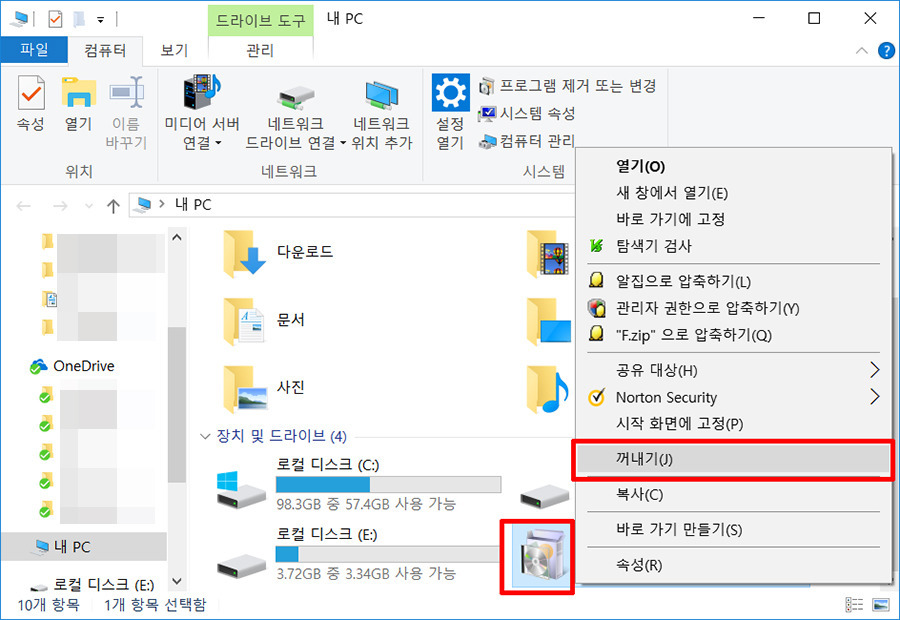 꺼내기를 해도 이미 설치된 프로그램이나 파일은 문제없이 계속 실행됩니다.
