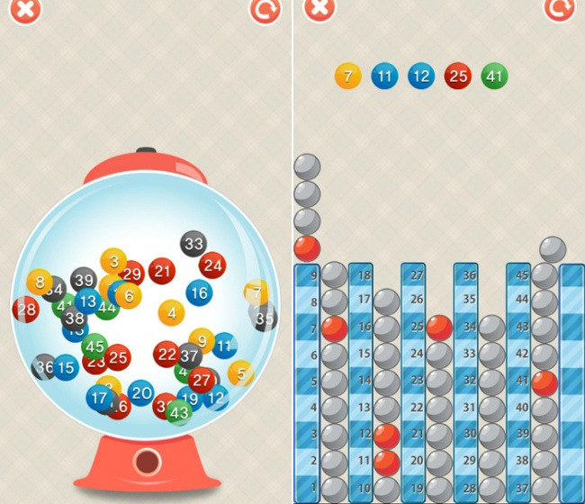 아래의 그림처럼 공굴리기와 구멍에 넣기 게임으로 재미있게 로또번호를 예상 할 수 있습니다.