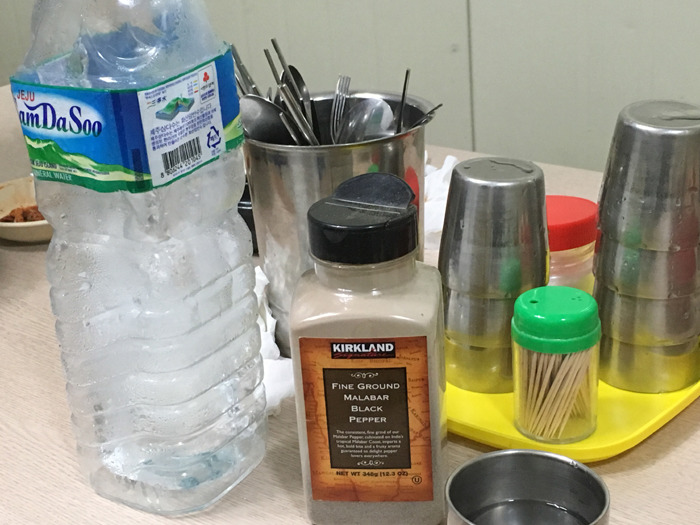 얼음물이 항상 테이블에 놓여져 있고 커다란 후추통이 맘에 드네요.
