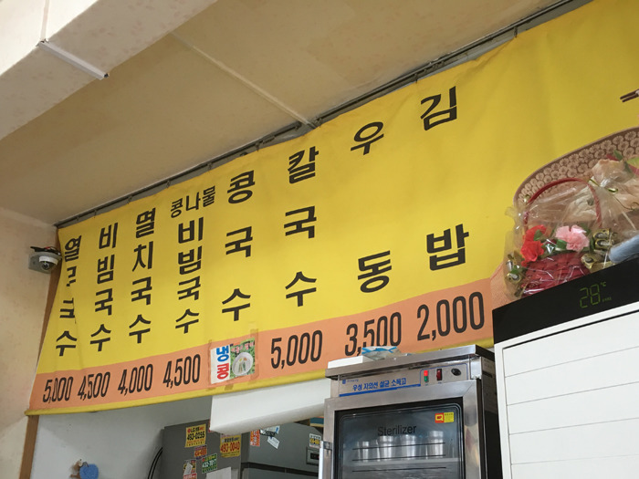 역시 8가지의 메뉴가 있는데 주로 비빔국수와 멸치국수, 김밥을 많이 드시더군요.