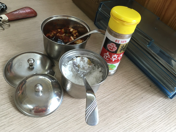 얼음물이 항상 테이블에 놓여져 있고 커다란 후추통이 맘에 드네요.