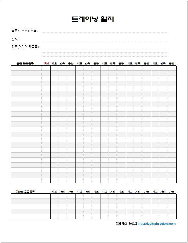 트레이닝 일지, 운동일지 엑셀파일을 다운로드하십시오. 웨이트 트레이닝, 피트니스, 각종 유산소 운동 등 헬스클럽이나 스포츠 센터를 다니면서 운동일지 쓰면 운동에 많은 도움이 될 것입니다.