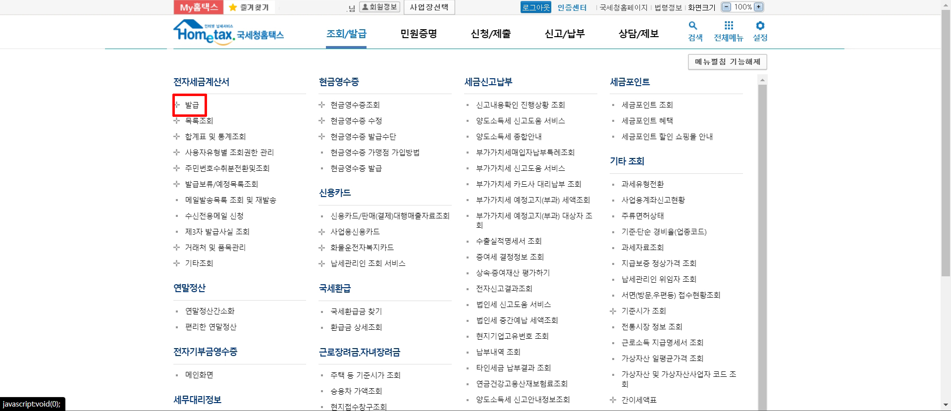 국세청 홈텍스에서 전자세금계산서 발급하는 방법