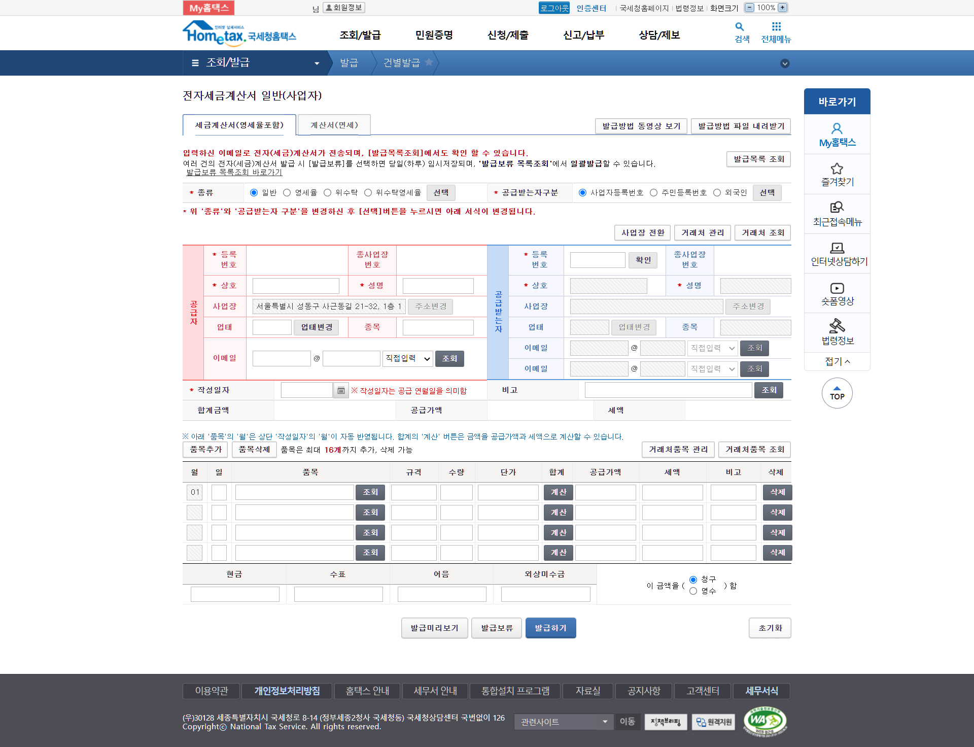 사업장을 운영하면서 전자세금계산서 발행하는 방법을 모르는 사업자는 없다고 봅니다만 그래도 한번 글을 써 봅니다.