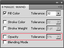 4. Opacity (투명도)에 체크를 하고 오브젝트를 클릭했을 경우 투명도가 같거나 유사한 오브젝트들이 선택됩니다.