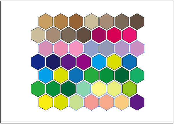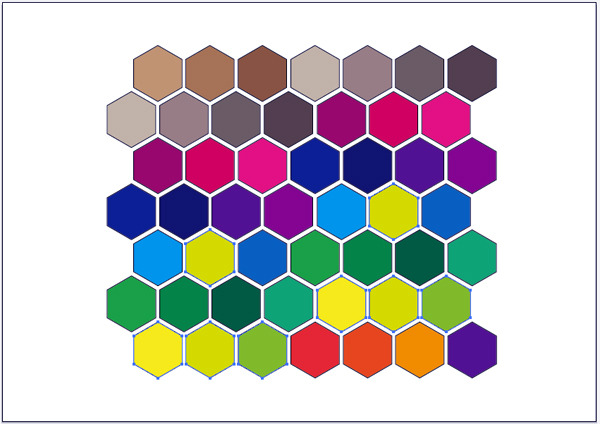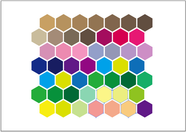 Fill color (면색상)에 체크 후 마술봉 툴로 클릭한 모습입니다. 면 색상이 옐로 컬러 느낌의 오브젝트들이 선택되었습니다.