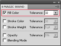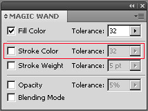1. Fill color (면색상)에 체크를 하고 오브젝트를 클릭했을 경우 면 색상이 같거나 유사한 오브젝트들이 선택됩니다.
