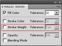 3. Stroke weight (선두께)에 체크를 하고 오브젝트를 클릭했을 경우 선 두께가 같거나 유사한 오브젝트들이 선택됩니다.
