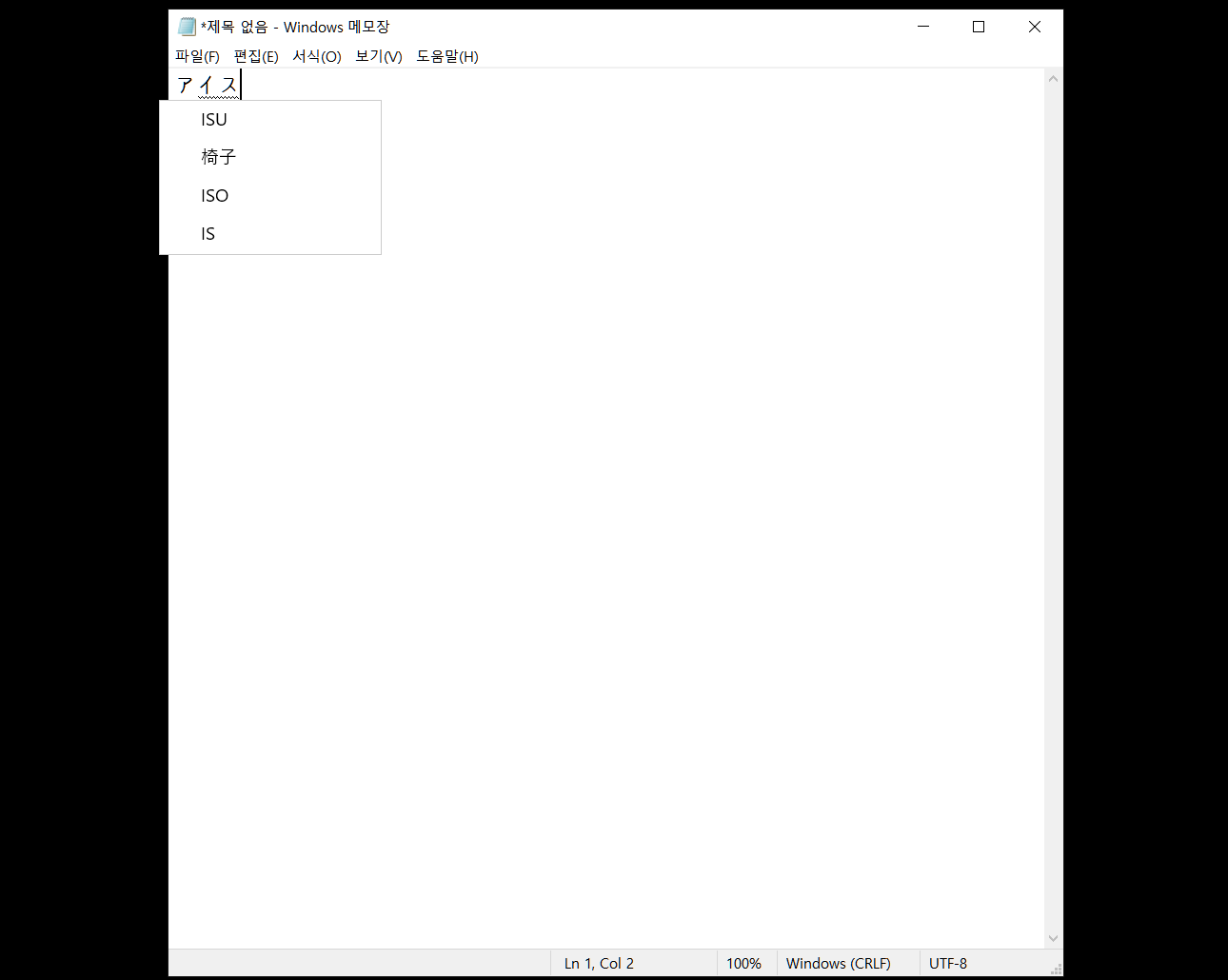 아래는 가타카나로 입력이 된 경우이며 가타카나 입력은 Alt + Cap Lock 이고 히라가나를 입력할 때는 Ctrl + Caps Lock을 누릅니다.