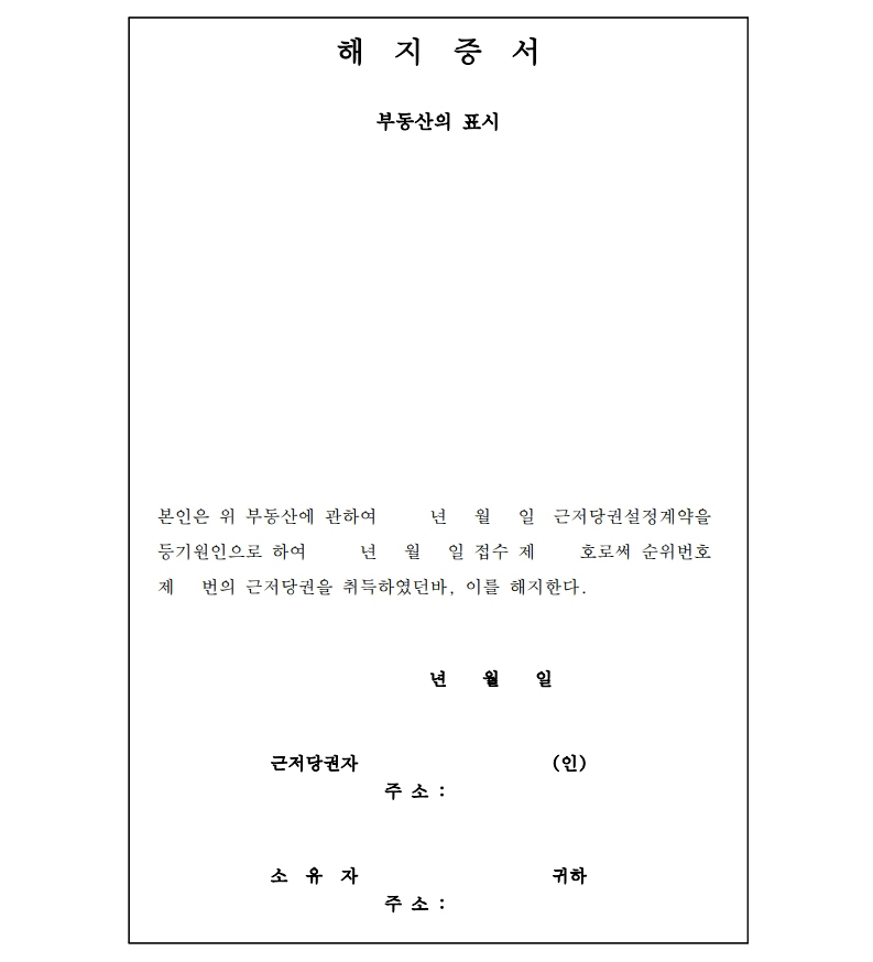 - 신분증과 도장을 준비하고 근저당 말소등기 신청서를 작성한 후 위 서류들과 제출하면 됩니다.