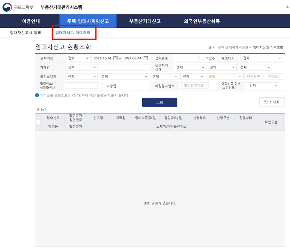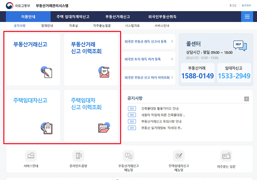 임대차 신고로 예를들면 임대차 신고서 등록 또는 임대차신고 이력조회를 통해 임대차신고 또는 부동산거래신고 업무를 처리하면 됩니다.