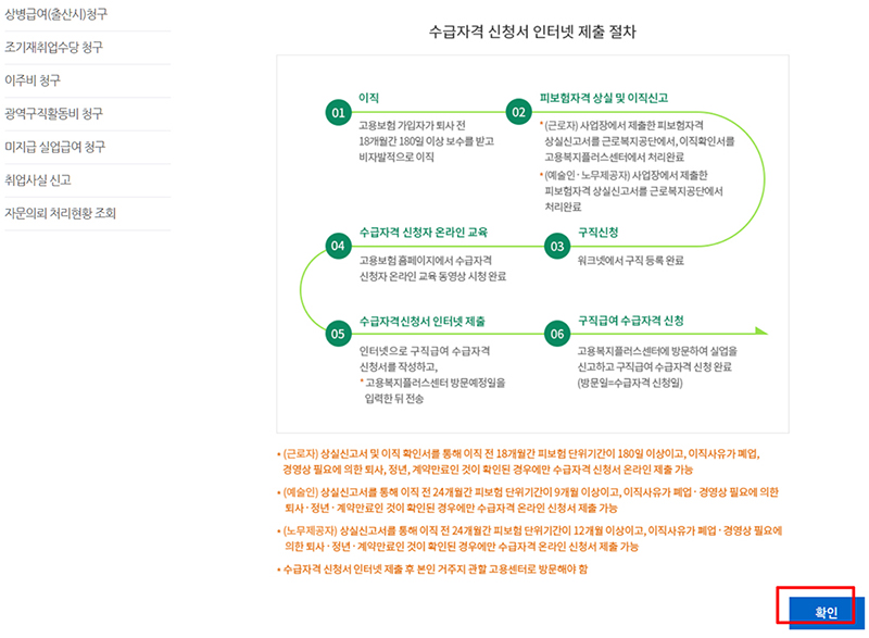 온라인 제출만으로는 수급자격 인정이 되지 않습니다. 위 절차를 모두 마친 후 반드시 고용센터에 방문하시기 바랍니다.