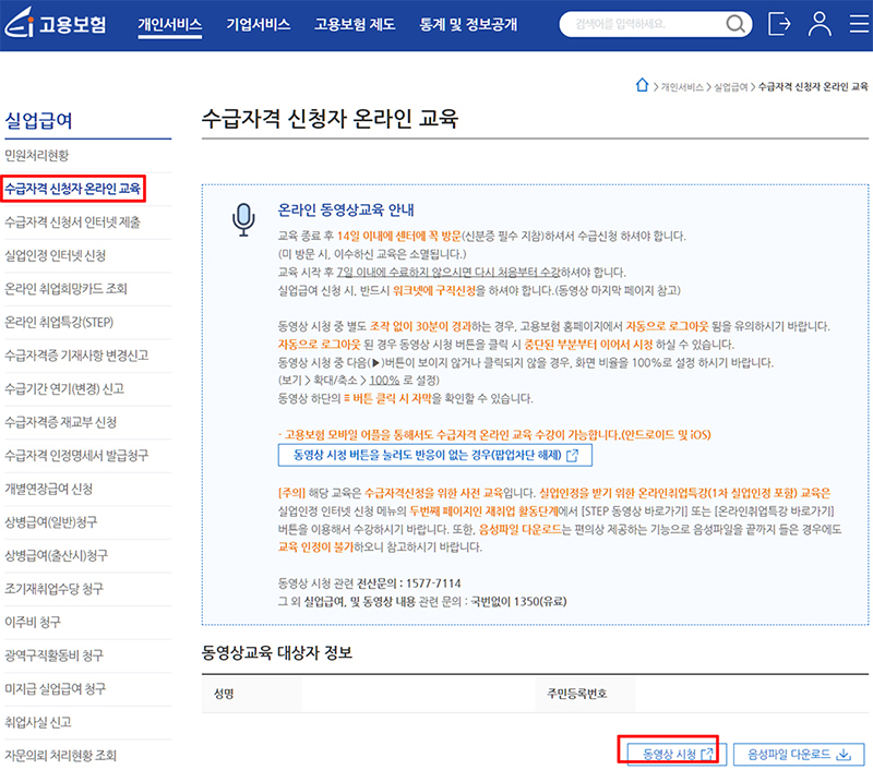 아래 링크로 들어가면 ‘인터넷 실업인정 신청 방법 설명 동영상 바로가기’ 와 ‘’22. 7. 1.부터 달라지는 실업인정 방식 설명 동영상 바로가기’ 가 있으니 반드시 시청하시기 바랍니다.