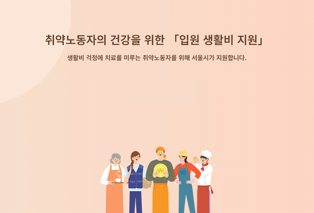 서울시에서는 질병·부상으로 치료가 필요한 노동 약자들을 위해 서울형 입원 생활비 지원 제도를 운영하고 있습니다.