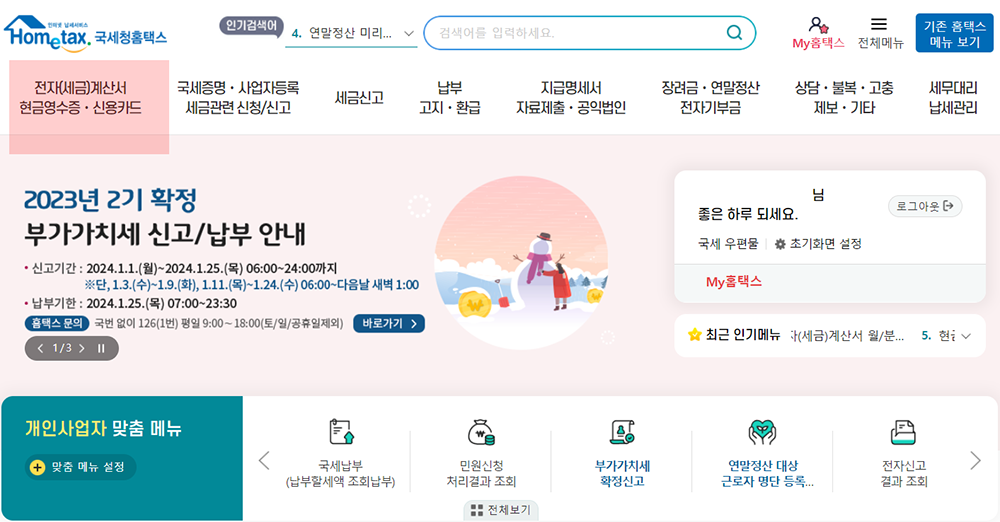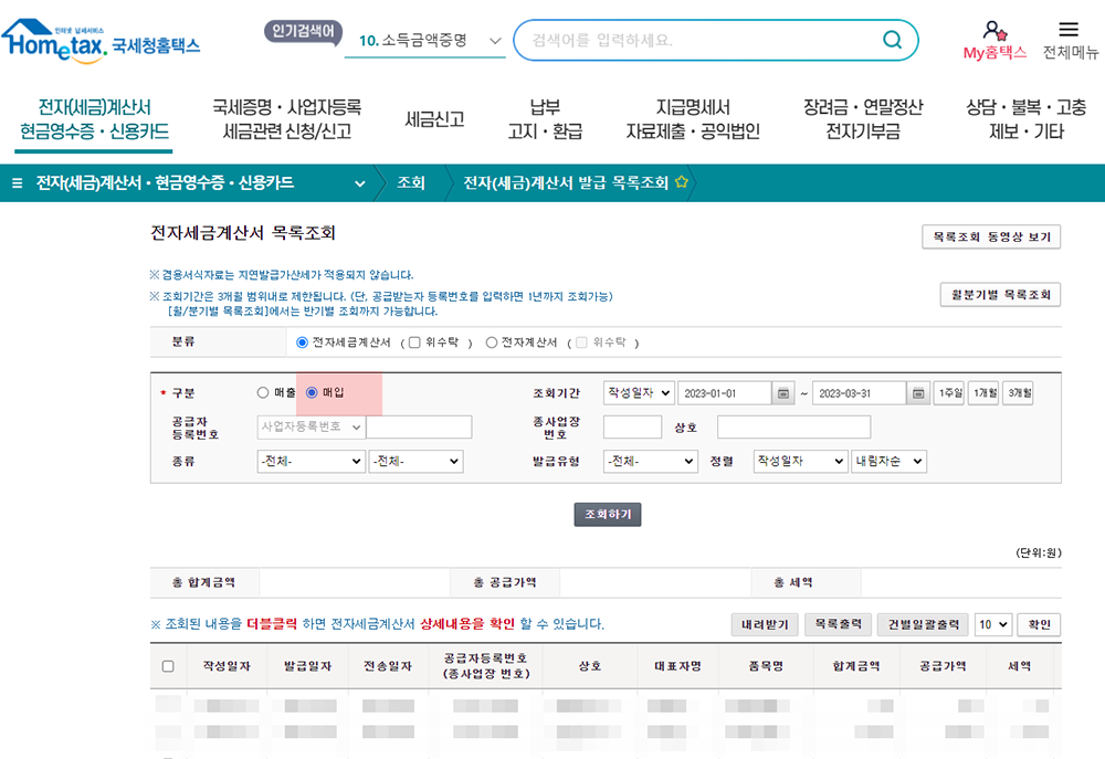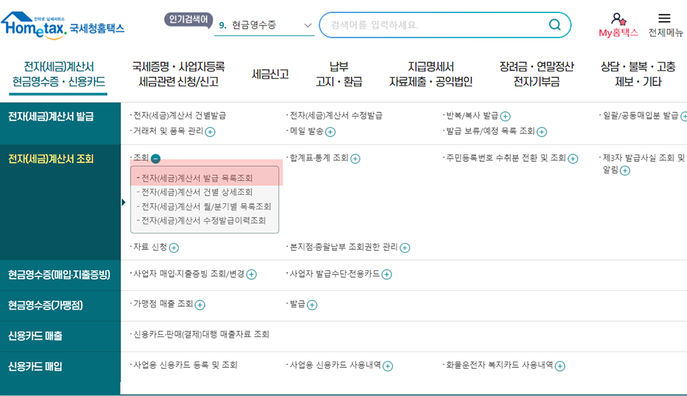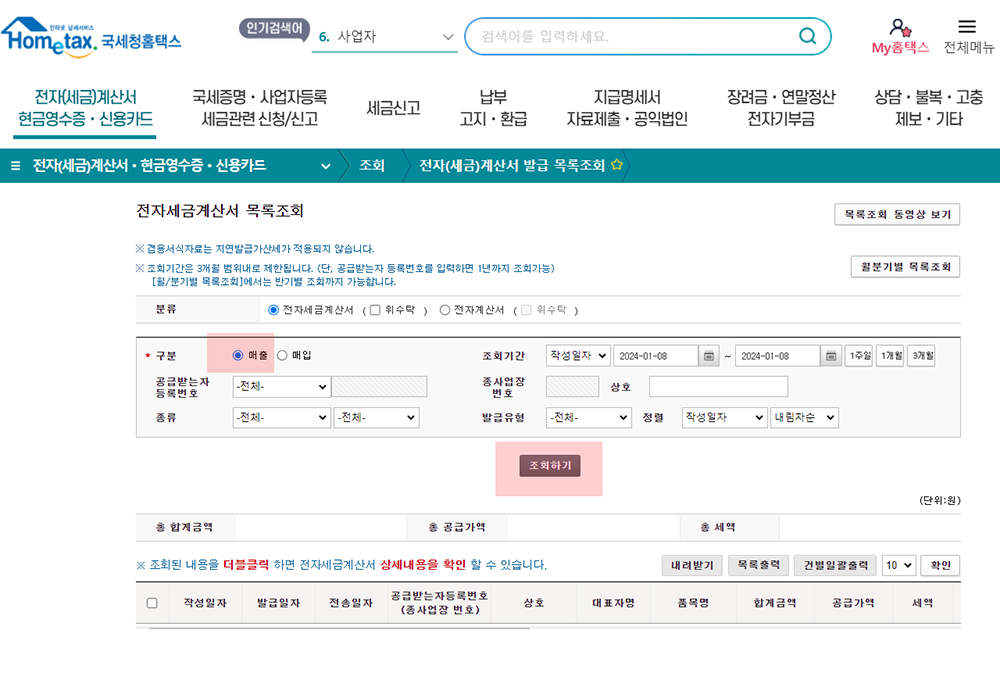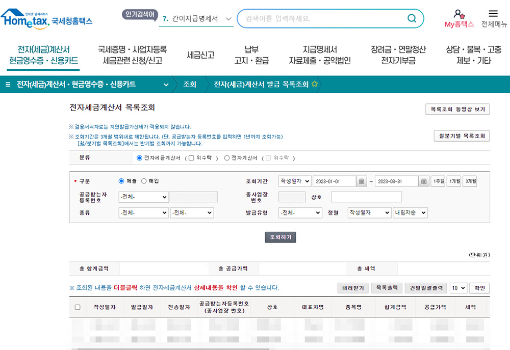 내가 발행한 세금계산서와 받은 세금계산서 조회 방법