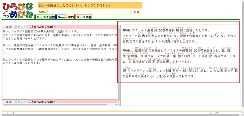 왼쪽에 문장을 입력하고 변환을 누르면 오른쪽에 친절하게도 후리가나가 달린 문장이 나오게 됩니다.