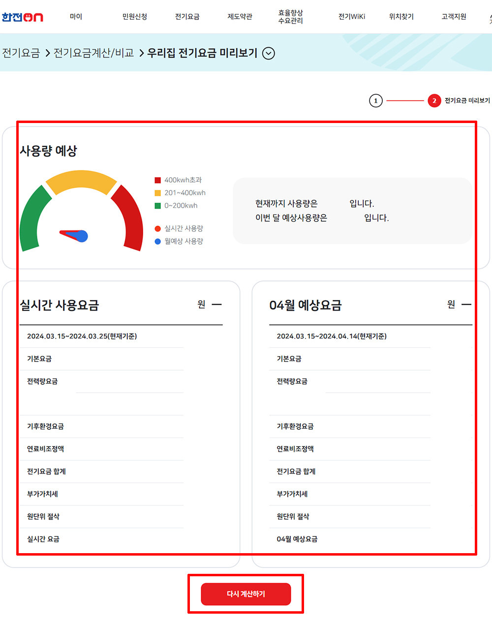실시간 전기요금조회 및 전기요금 계산기와 전기사용량