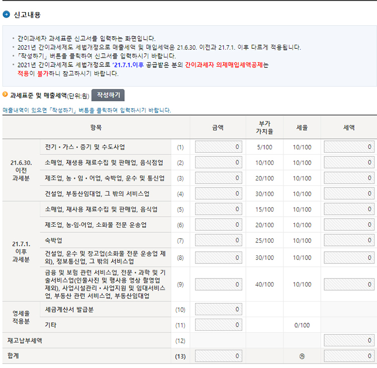 참고로 간이과세자는 환급받을 세액은 해당되지 않습니다.즉, 환급받을 세액은 없습니다.