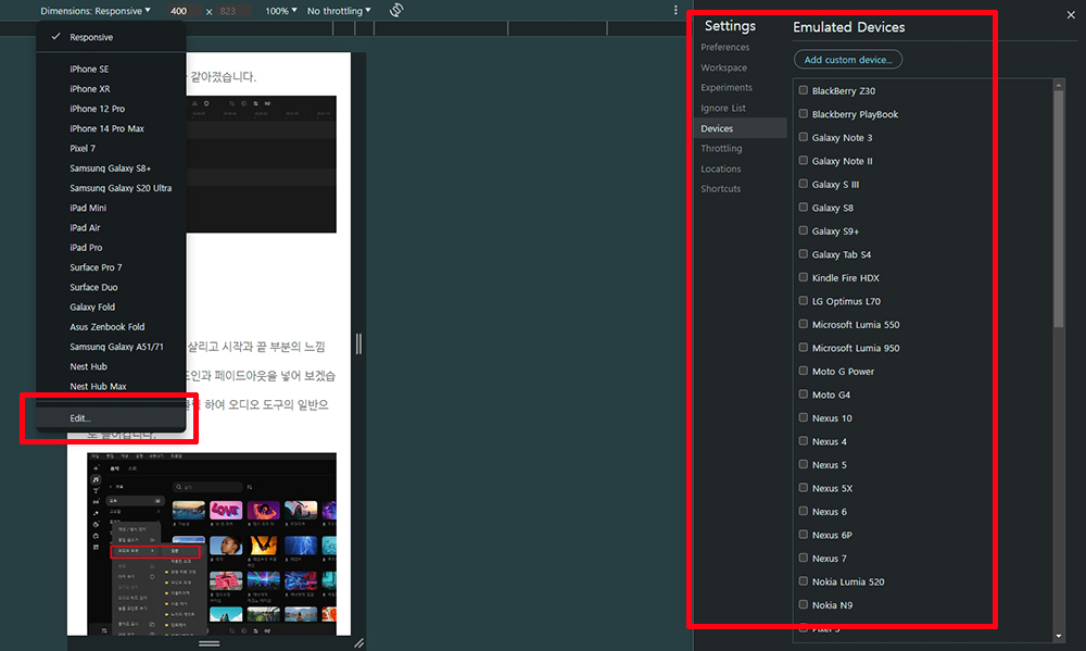 컴퓨터 PC 에서 모바일 화면 미리보기 하는 방법