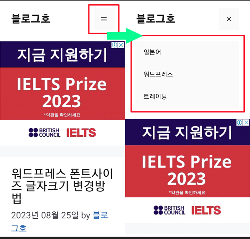 노트북이나 데스크탑에서는 메뉴가 없어도 보통 사이드바에 카테고리가 보이므로 없어도 나쁘지 않지만, 모바일에서는 메뉴가 상단에 보이면 방문자가 사이트를 둘러보기가 수월해질 것입니다.
