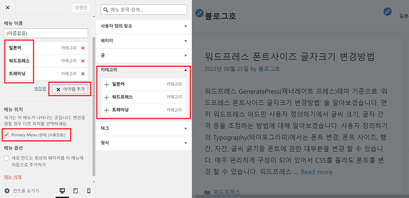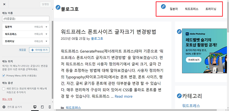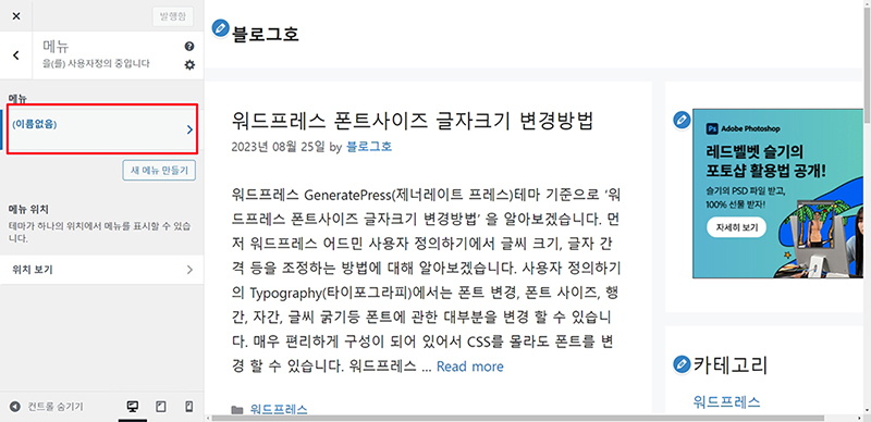 워드프레스 블로그 카테고리 메뉴 만드는 방법