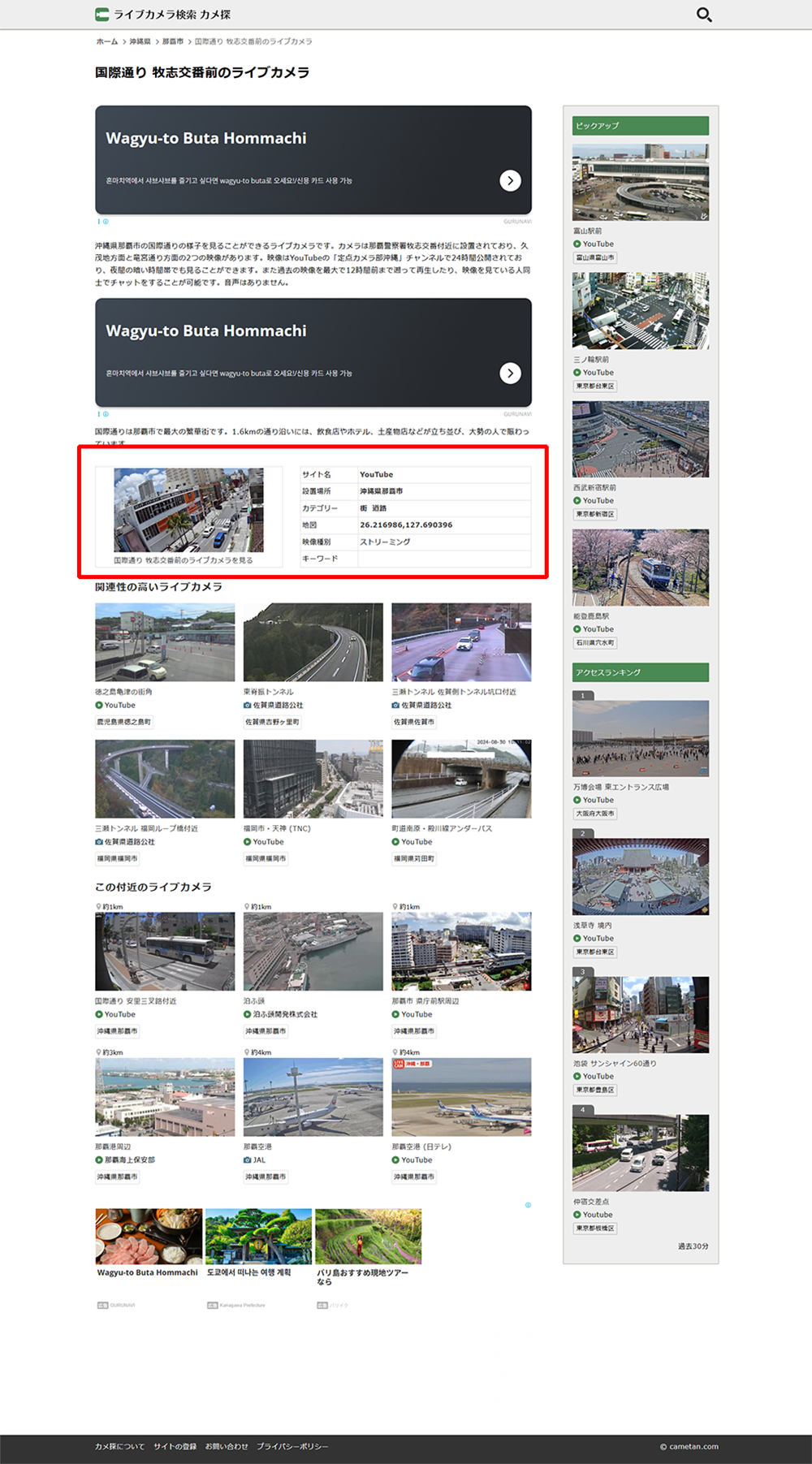 저희 사이트는 링크 프리로 되어 있어 어느 페이지에 링크하셔도 됩니다. 링크 허가 요청 및 링크 연락에 대해서도 불필요합니다.” 라고 소개하며 대부분 유튜버들이 참가하여 실시간 일본 현지 cctv를 보여 주는 사이트입니다.