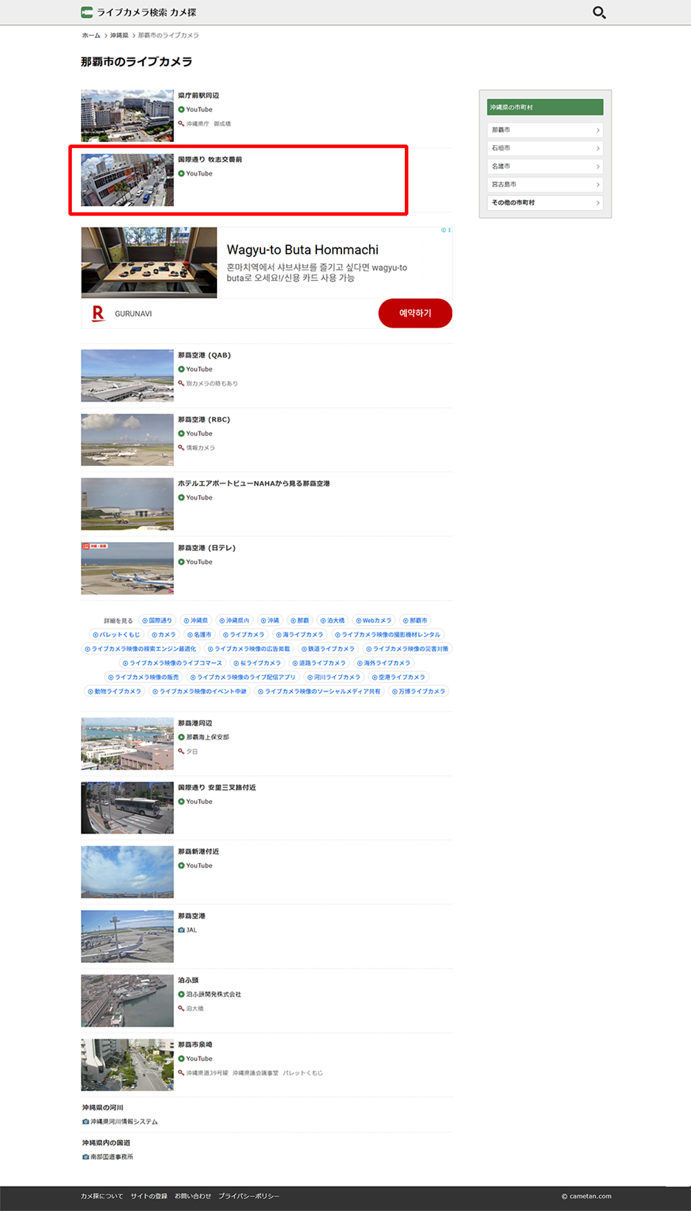 나하시, 이시가키시등 오키나와의 cctv를 볼 수 있는 지명이 나옵니다. 나하를 보겠습니다.