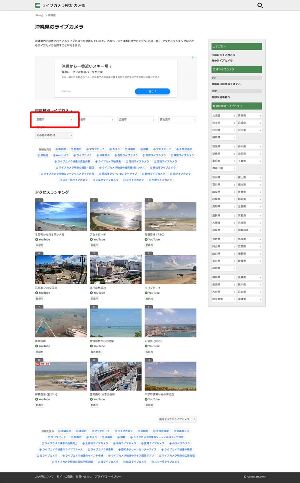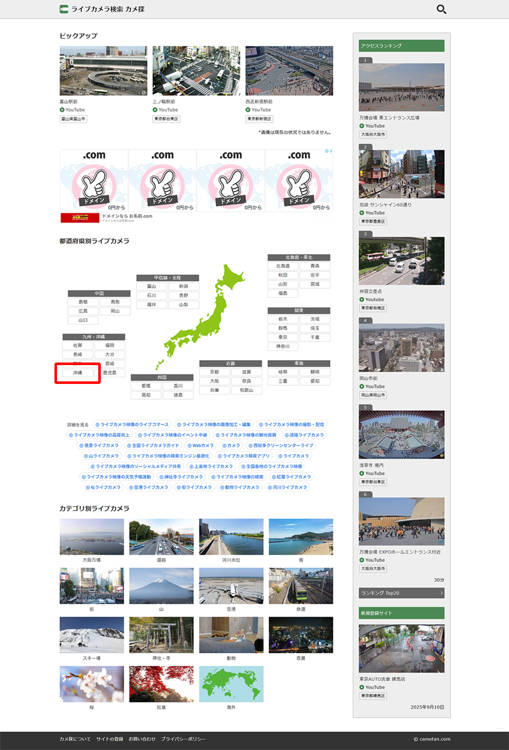 오늘은 실시간으로 일본 CCTV를 볼 수 있는 사이트 카메탄 cametan을 소개하겠습니다. cametan은 일본 각 지역의 cctv를 실시간으로 볼 수 있는 사이트입니다. cametan.com은 일본 국내외에 설치된 라이브 카메라를 지역이나 카테고리별로 분류해 소개하고 있습니다.