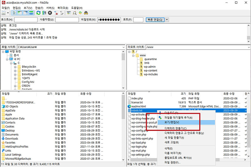 그러면 워드프레스 robots.txt 수정 및 파일질라 FTP를 이용해서 수정된 파일을 업로드하는 방법을 알아보겠습니다.