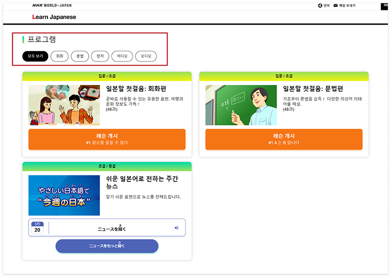 무료 기초 일본어 강좌 NHK WORLD JAPAN