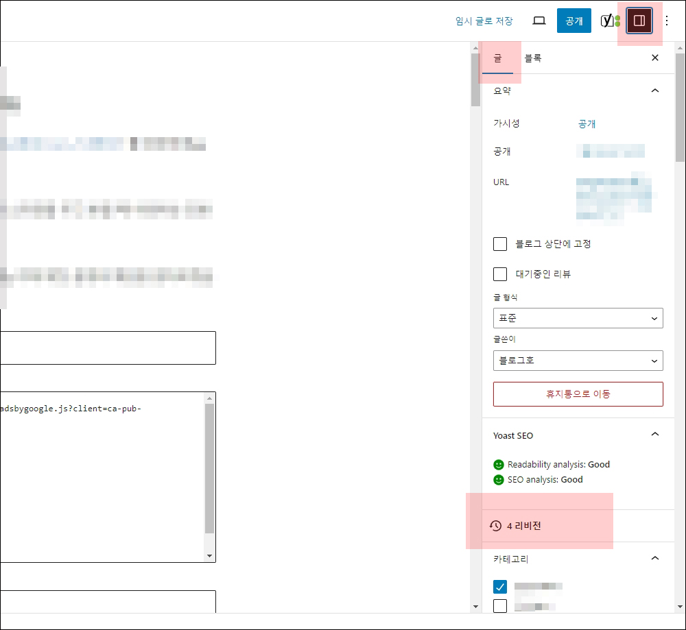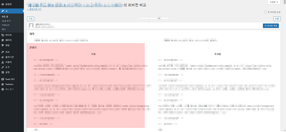 워드프레스 블로그 리비전 사용법 및 삭제 방법