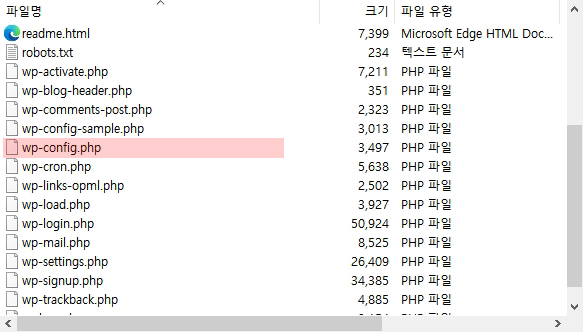 아래와 같이 FTP 에서 wp-config.php 를 찾습니다.