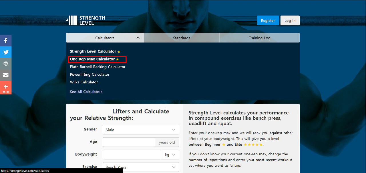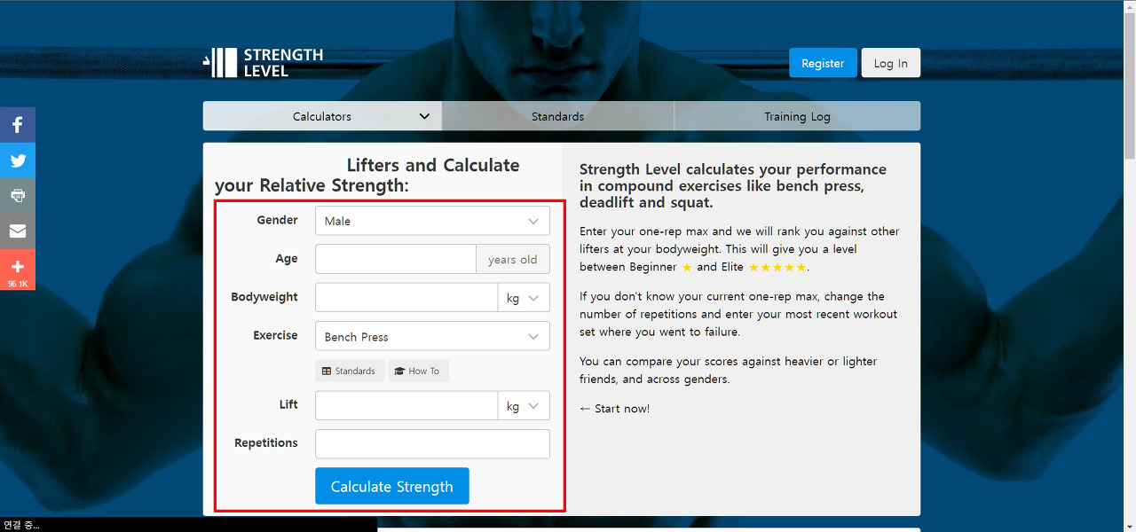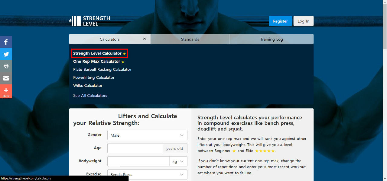 아래는 성별, 몸무게, 나이, 리프팅 무게 등을 입력하면 자신의 스트렝스 레벨을 알아볼 수 있는 계산기입니다.