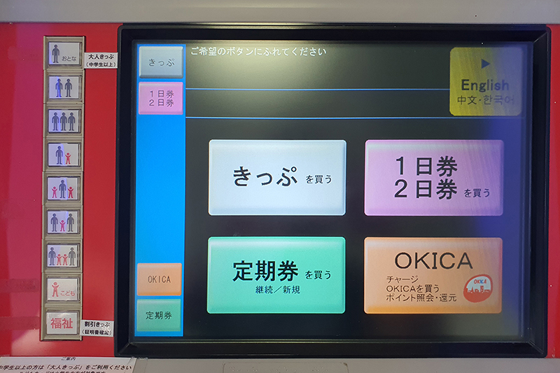 오키카는 유이레일 역에서 구입과 충전이 가장 간편하고 유이레일은 물론 버스에서 이용할 수 있으며 오키카 로고가 있는 편의점 등에서 사용이 가능합니다.