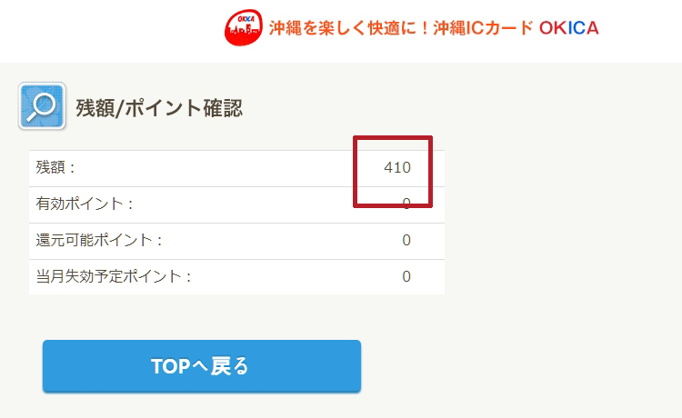 잔액 조회를 합니다. 현재 410 엔이 남아 있습니다.