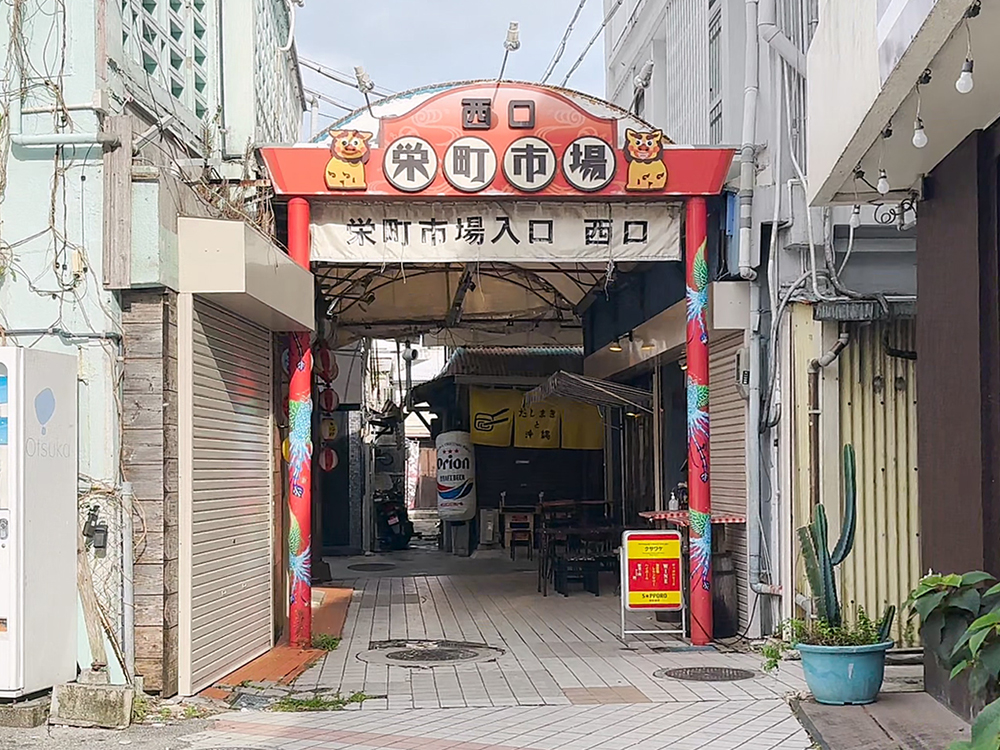사카에마치 시장의 서문 입구입니다. 유이레일 아사토역 2번출구로 나와서 보이는 골목으로 바로 들어가도 되지만 사거리쪽으로 조금 내려오면 서문입구를 볼 수 있습니다.