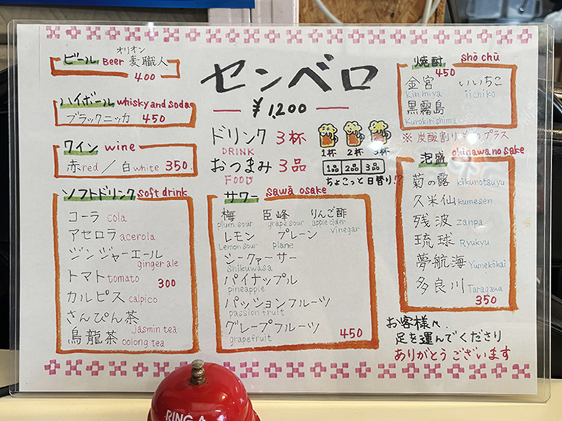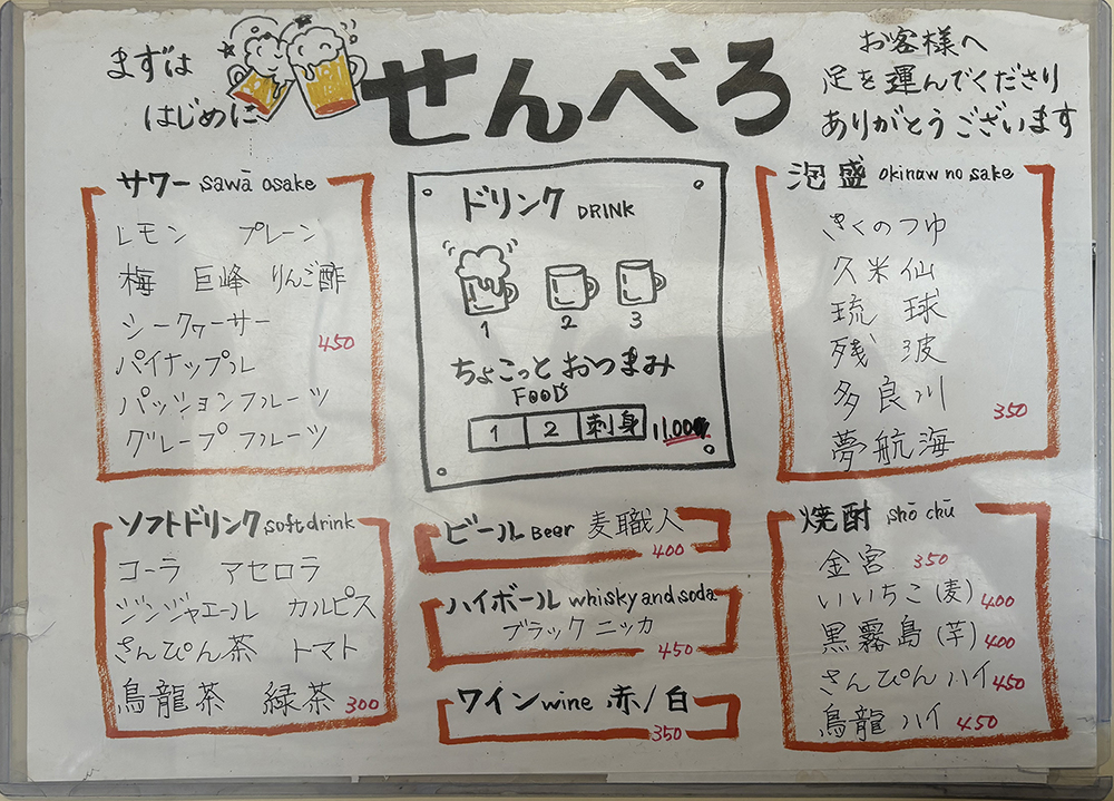 *2025년 6월 현재 센베로는 세금포함 1,200 엔이구요. 가격은 조금 올랐습니다. 아래는 새로운 메뉴판 입니다.