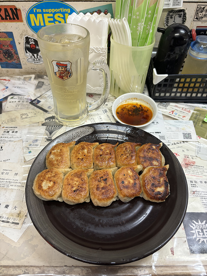 사카에마치 시장에 오면 매번 방문하는 벤리야에서 먼저 야끼교자와 하이볼을 먹고 바로 옆집 렌게로 가겠습니다. 참고로 벤리야에서 음식을 포장해서 렌게에서 먹어도 되는데 모찌꼬미( もちこみ. 반입) 비용 500엔을 내야 합니다.
