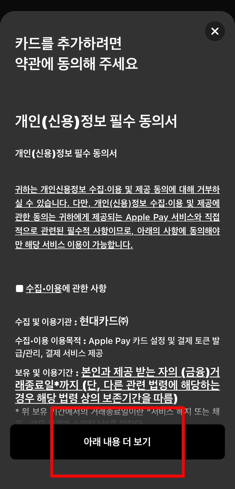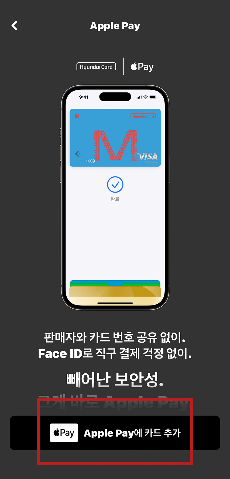 아래 내용은 현대카드 앱을 이용하여 아이폰 지갑에 애플페이를 추가하는 방법입니다.