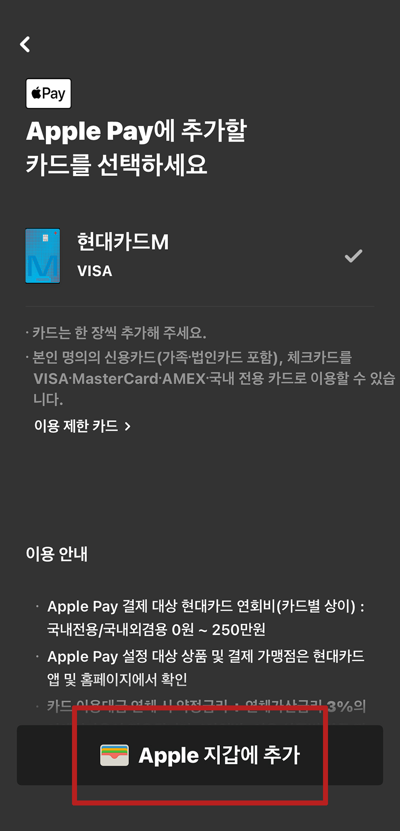 애플페이 현대카드 아이폰지갑에 추가 설정 하는 방법